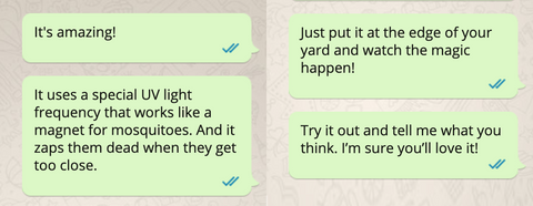 The next morning, I saw a WhatsApp message from a friend who works in a major tech company as an electrical engineer. He told me all about ZapTek , a new mosquito zapper his friend had just created. It attracts and kills mosquitoes using a brand new lightwave technology.
